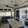 Customized and furnished 5th Wheel RV that sleeps 5-6. The bedroom includes two closets and a built in dresser. There is also storage under the queen bed. Combo washing machine and dryer are housed in the bedroom.